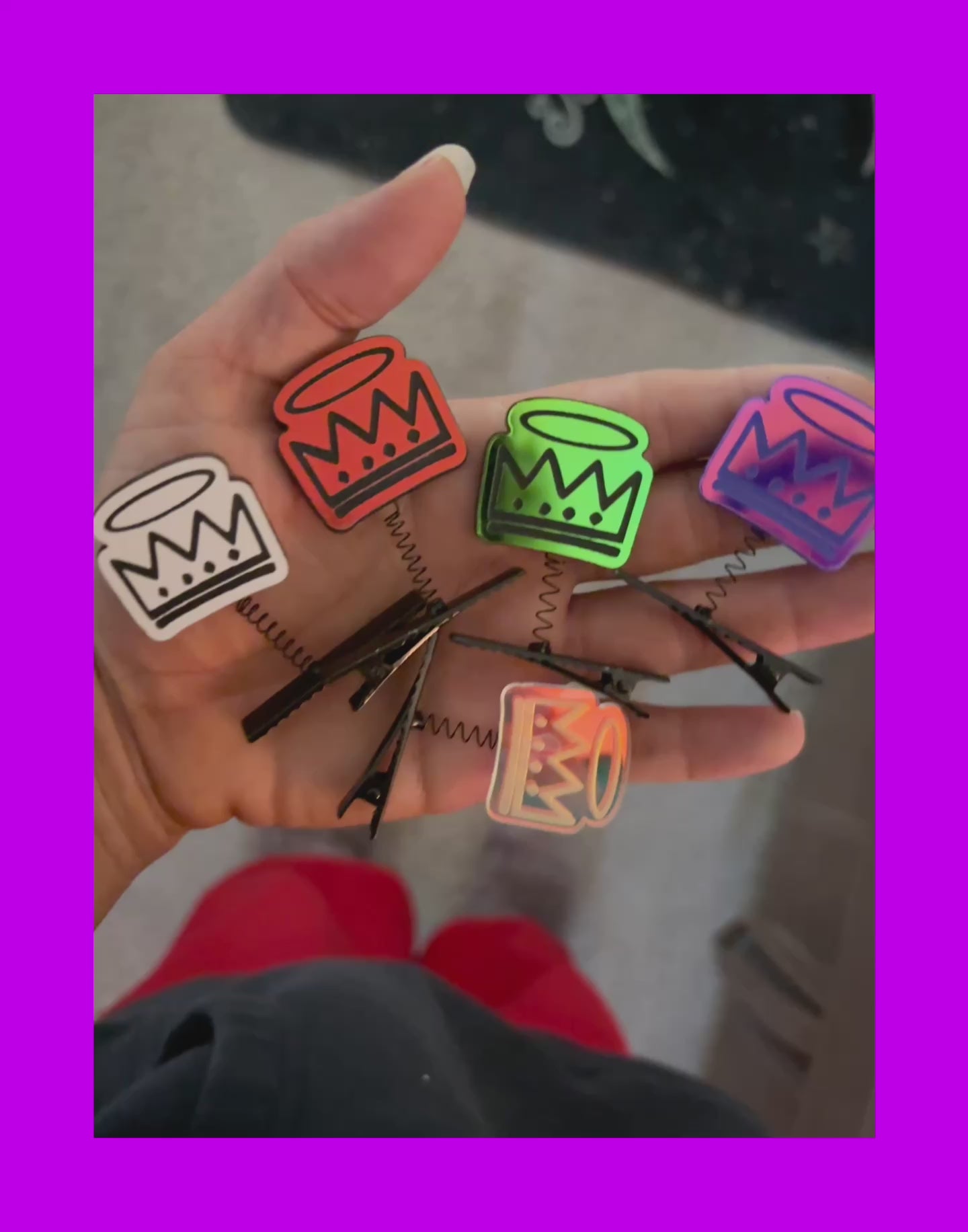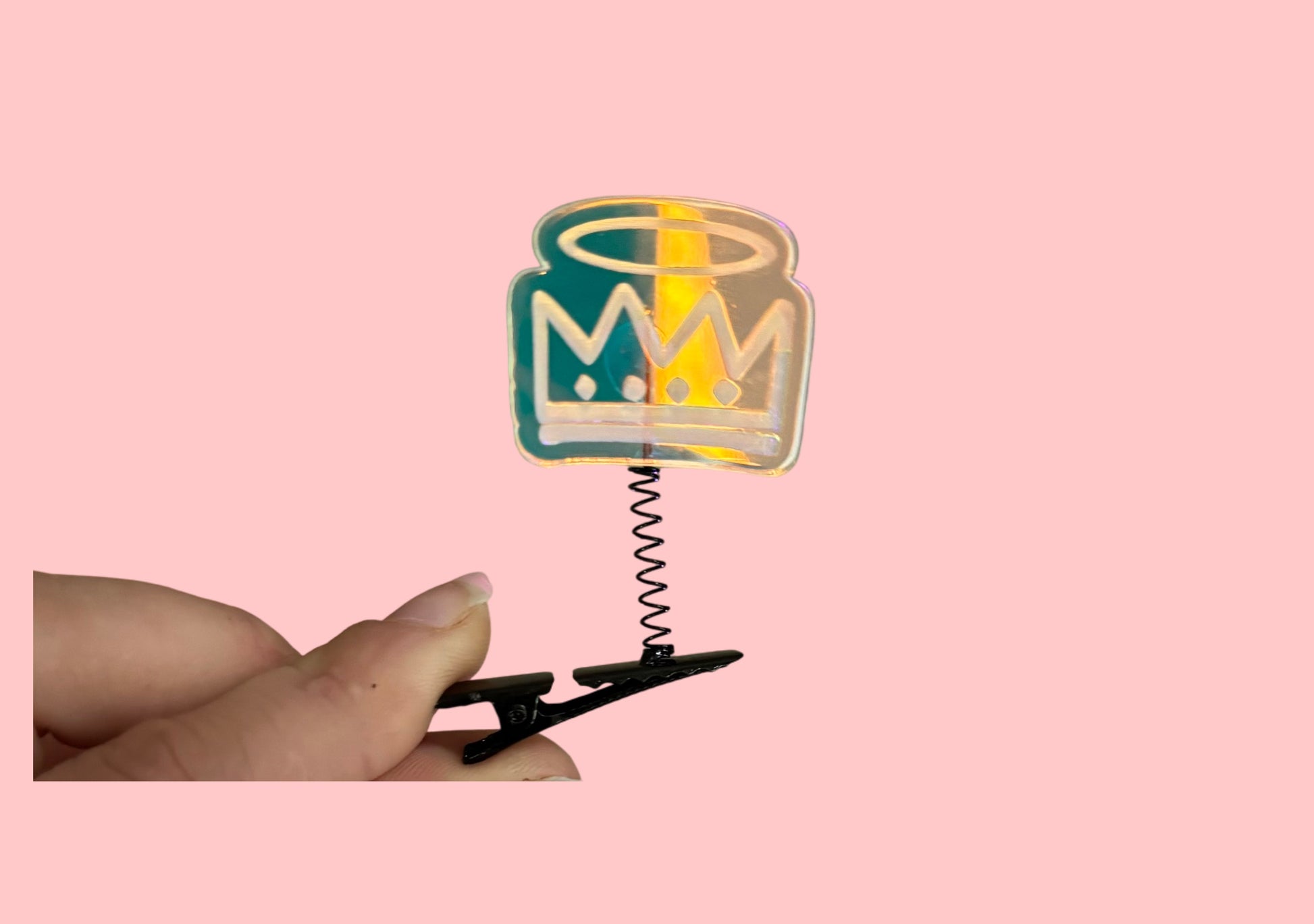 Acrylic charms super glued onto spring sprout clips!
