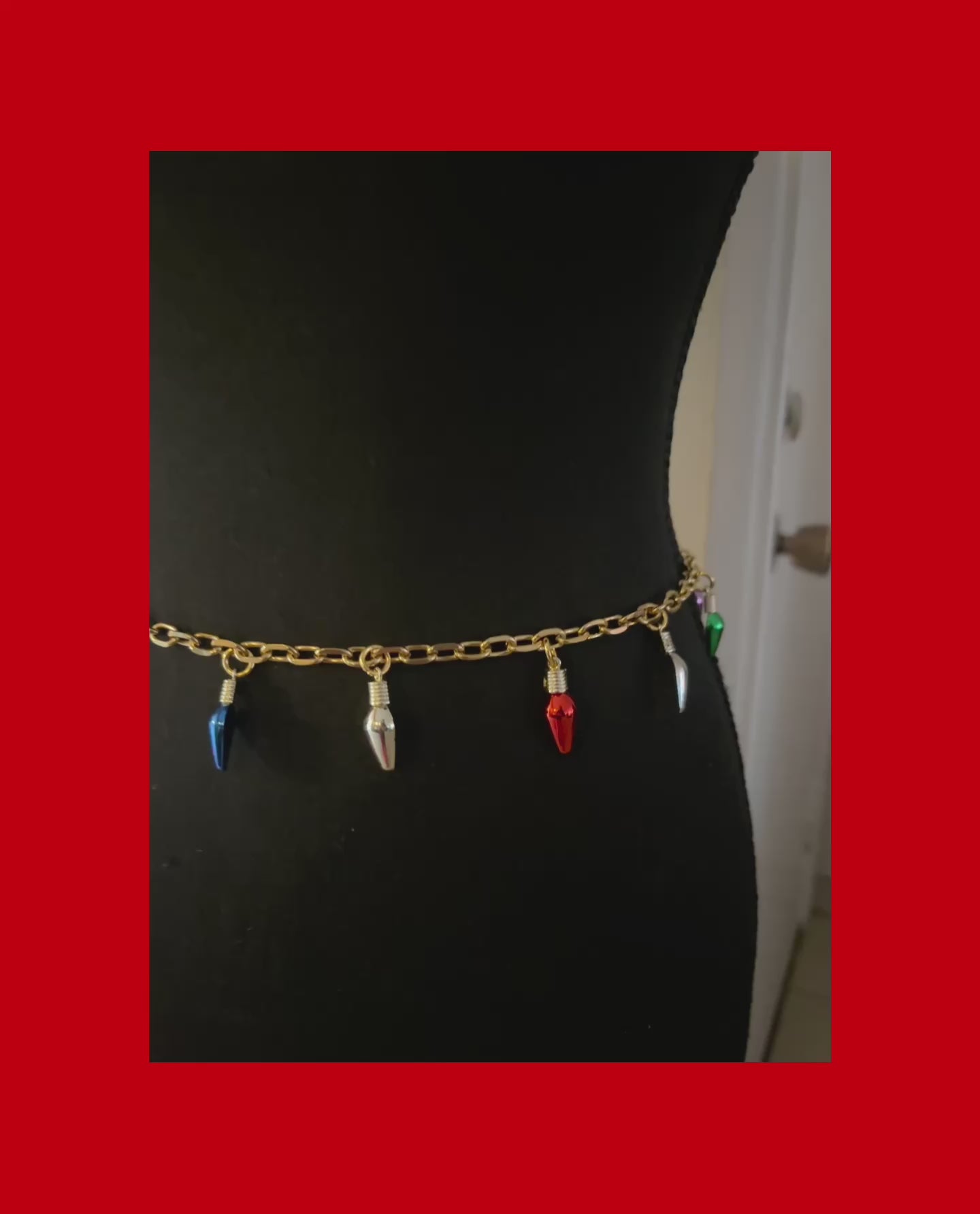 gold stainless steel chain and christmas light charms! perfect for a christmas party!