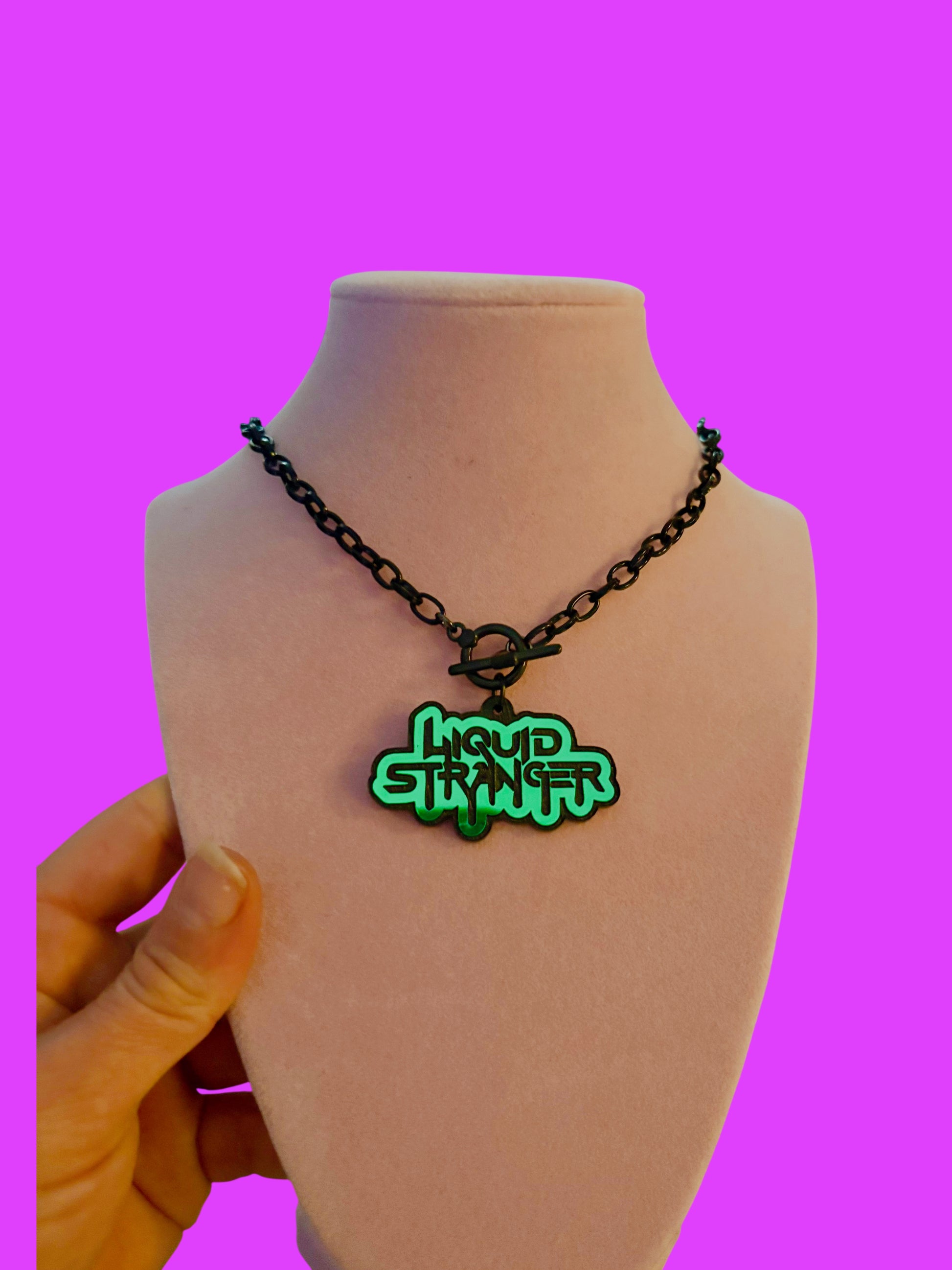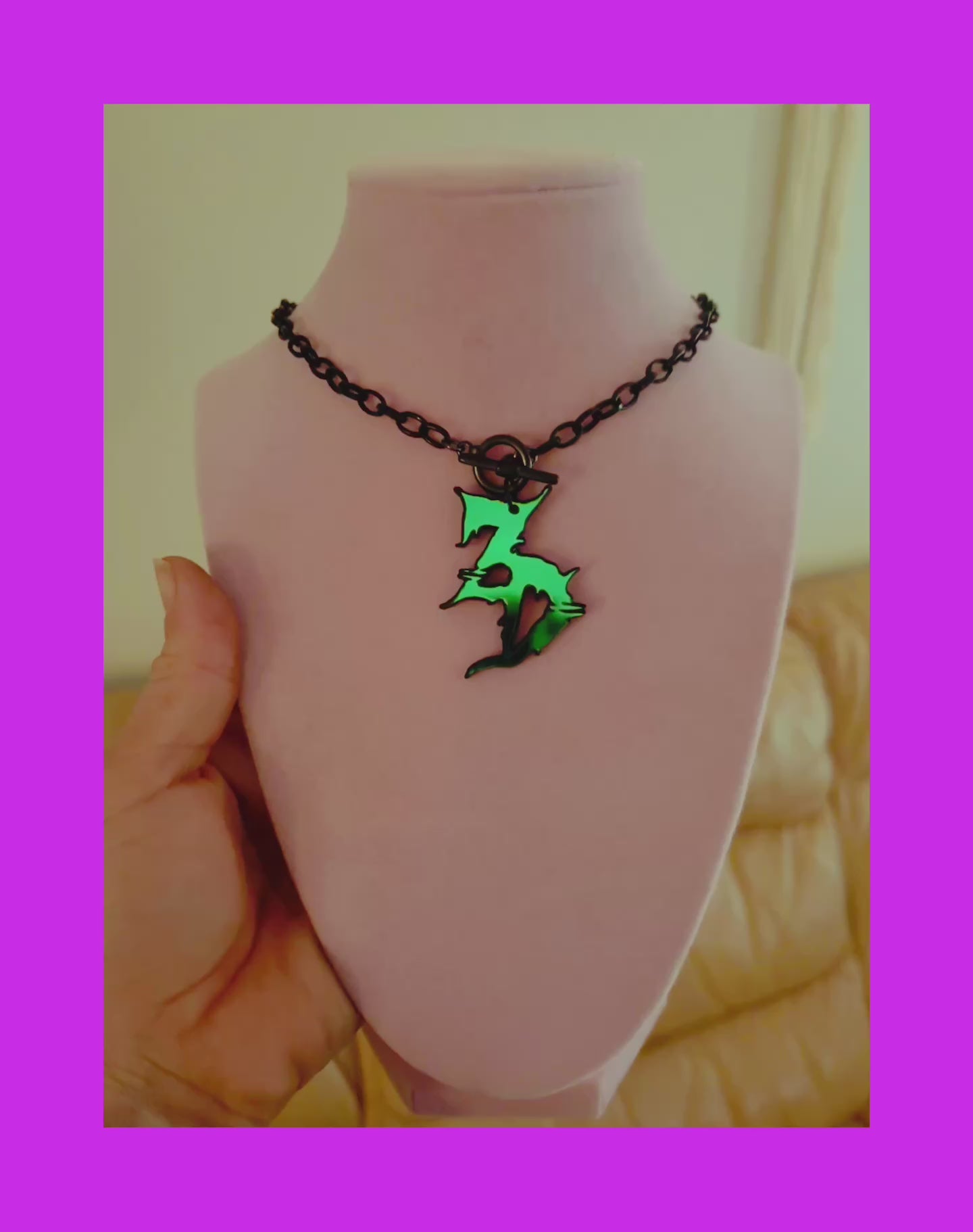 holographic stainless steel chain matches violet holographic charms perfectly! black chain matches midnight holographic and teal holographic charms perfectlY!
