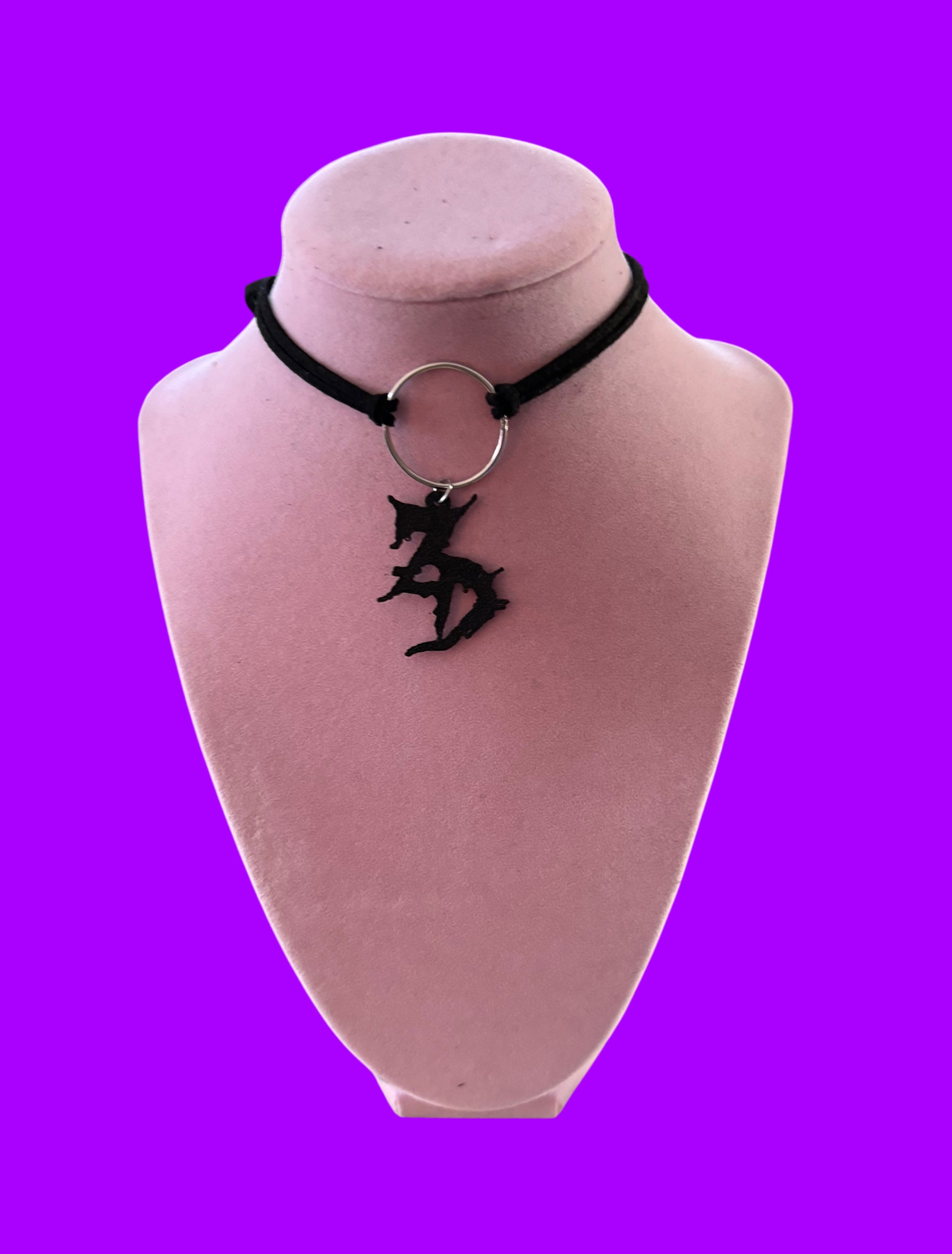 3d printed charm, silver or gold o ring, tie back suede cord
