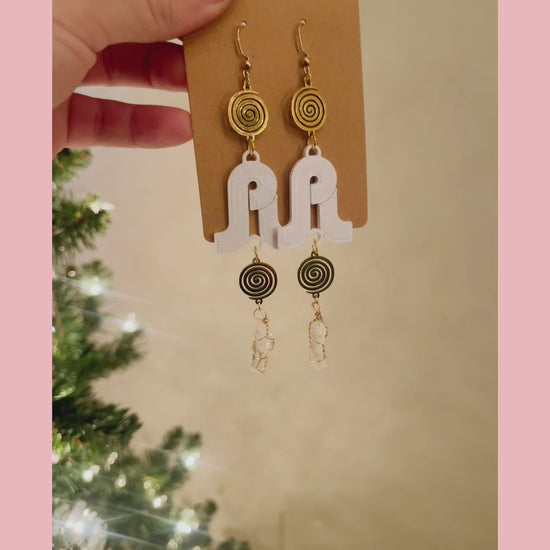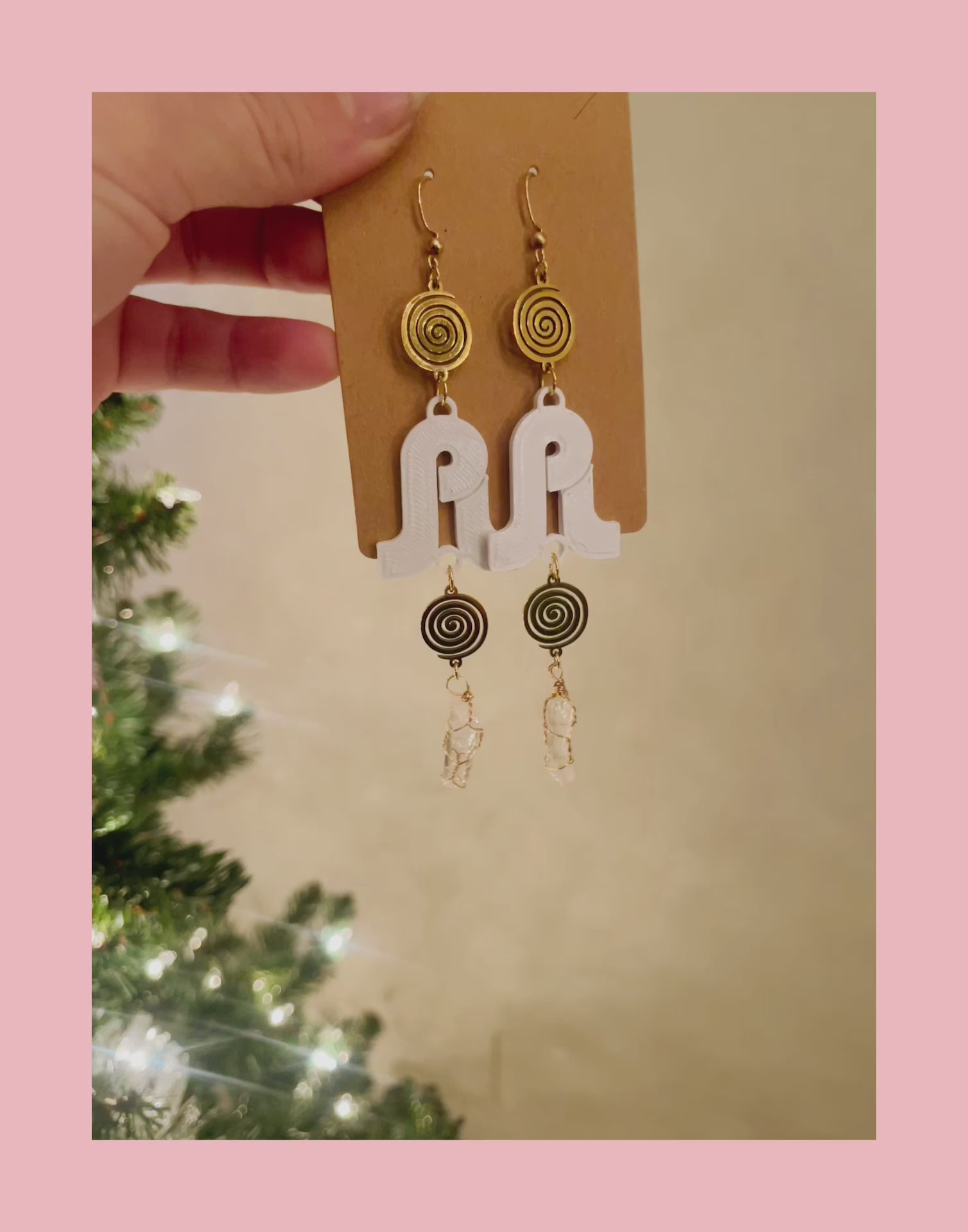 3d printed PL charms, swirl charms (metal), crystals. Roughly 3.5 inches. Crystal size may slightly vary