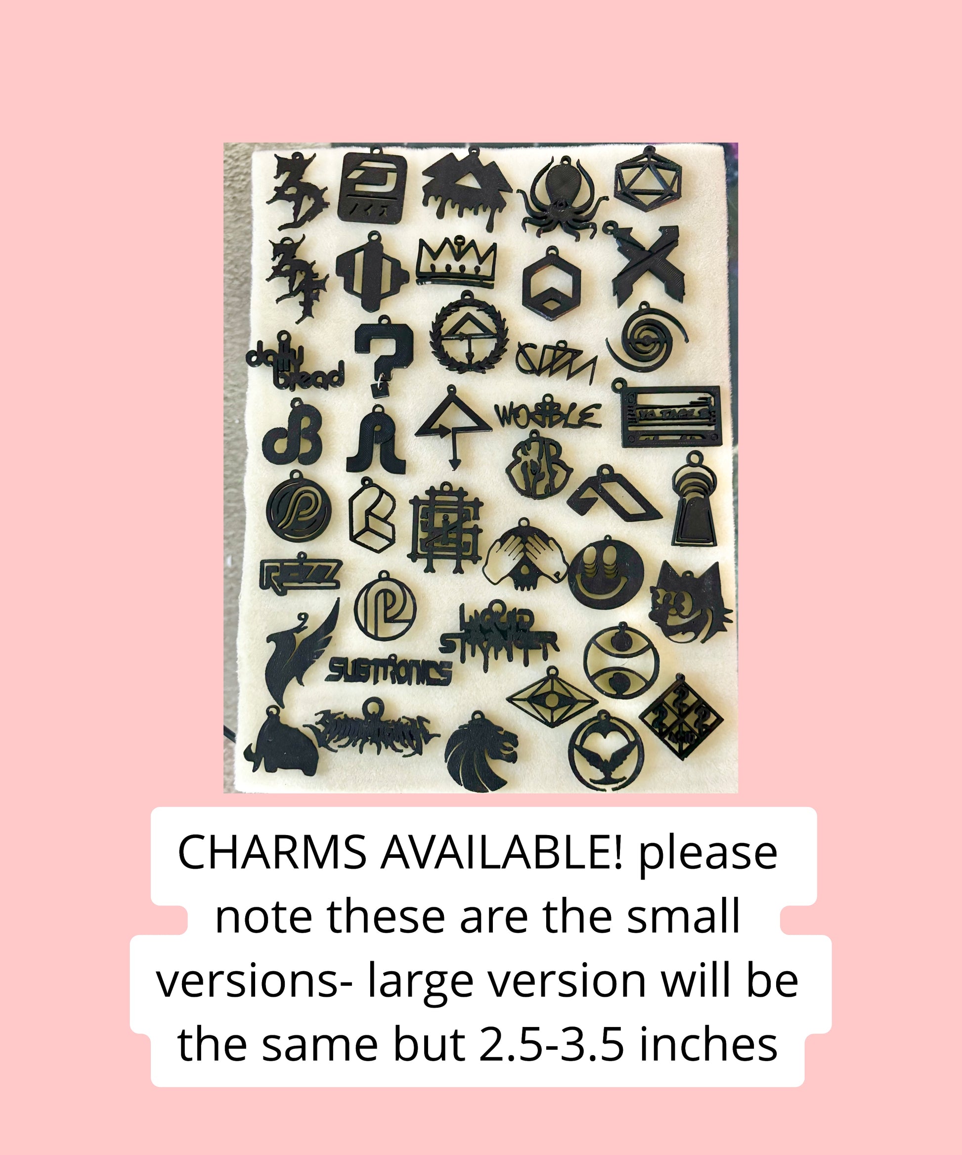 3d printed charm 2.5-3.5 inches. Please note longer charms (like svdden death and wobble) will be closer to 3.5-4 inches!