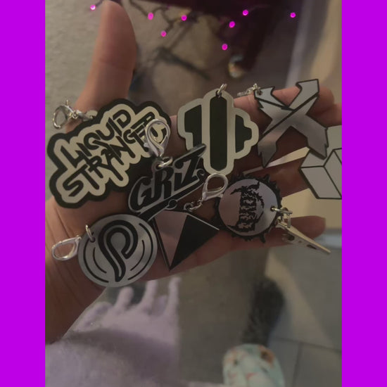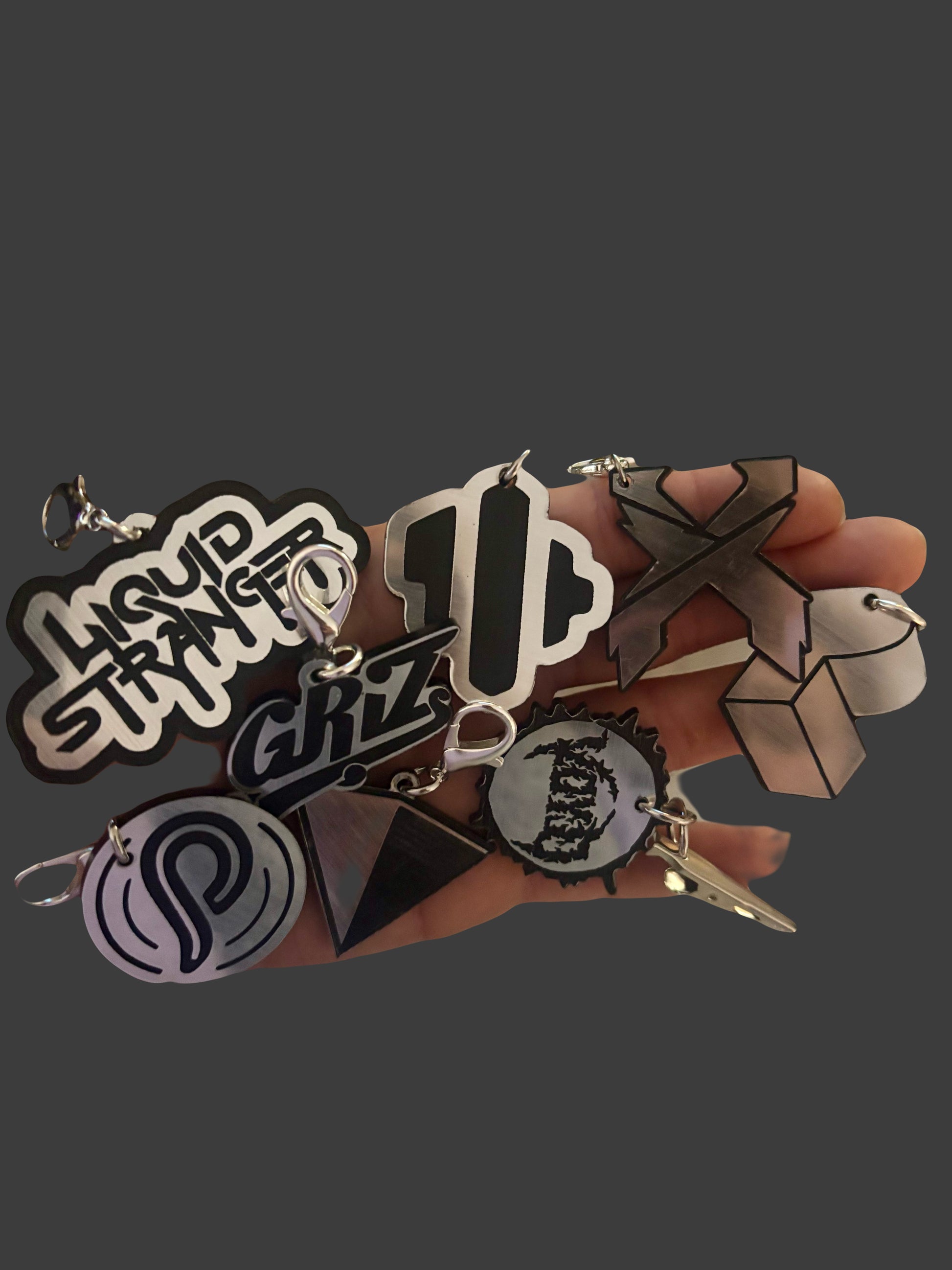 acrylic charms. This color has a brushed silver steel appearance and engraves black and is black on the back.- your choice of small medium or large- attached to a silver or black clasp (your choice!) to hang from your hats, keychains, outfits, anything! See other listings for other colors