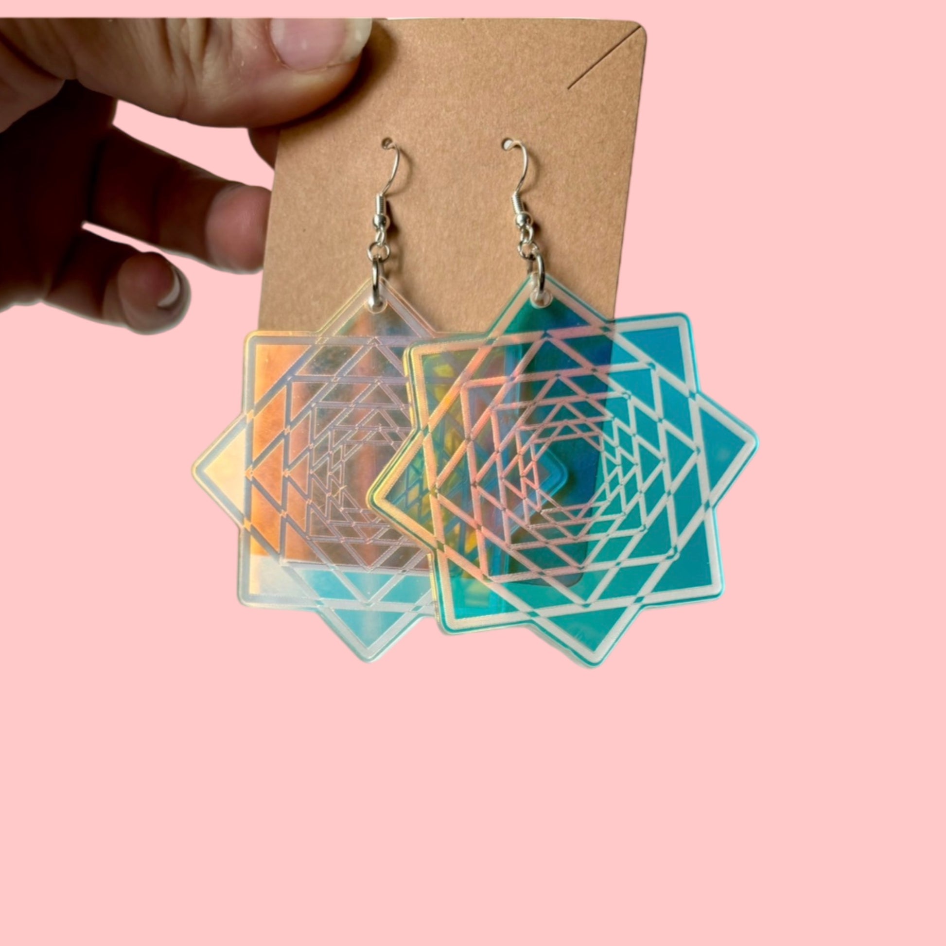 Acrylic flowstar earrings available in small, medium and large. See photos for size reference