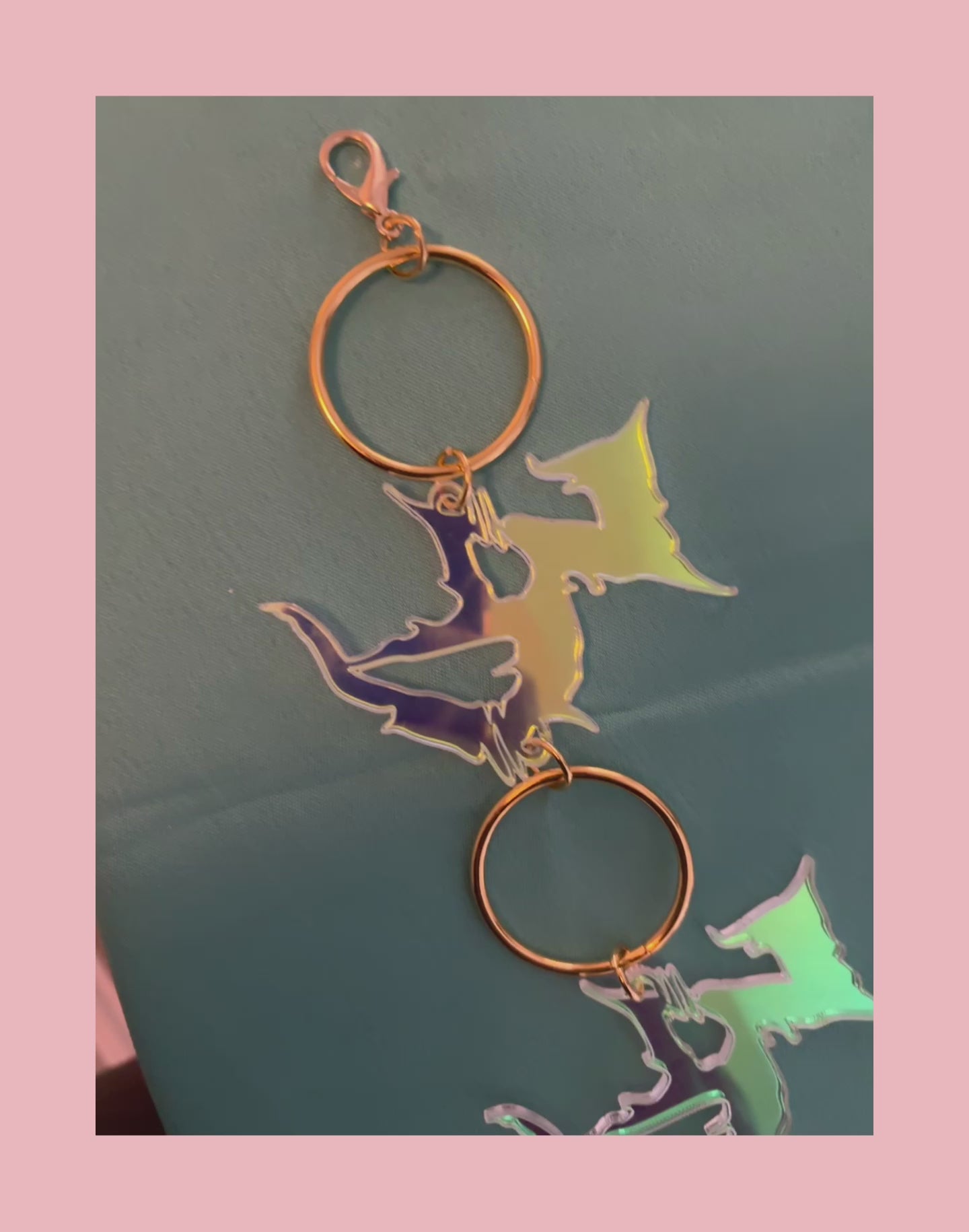 Iridescent acrylic artist charms w 1.5 inch metal rings! For sizing - select the range your waist size falls in. The belt and rings are made to that size and I then add about 10 inches of chain for adjustability down the hips!