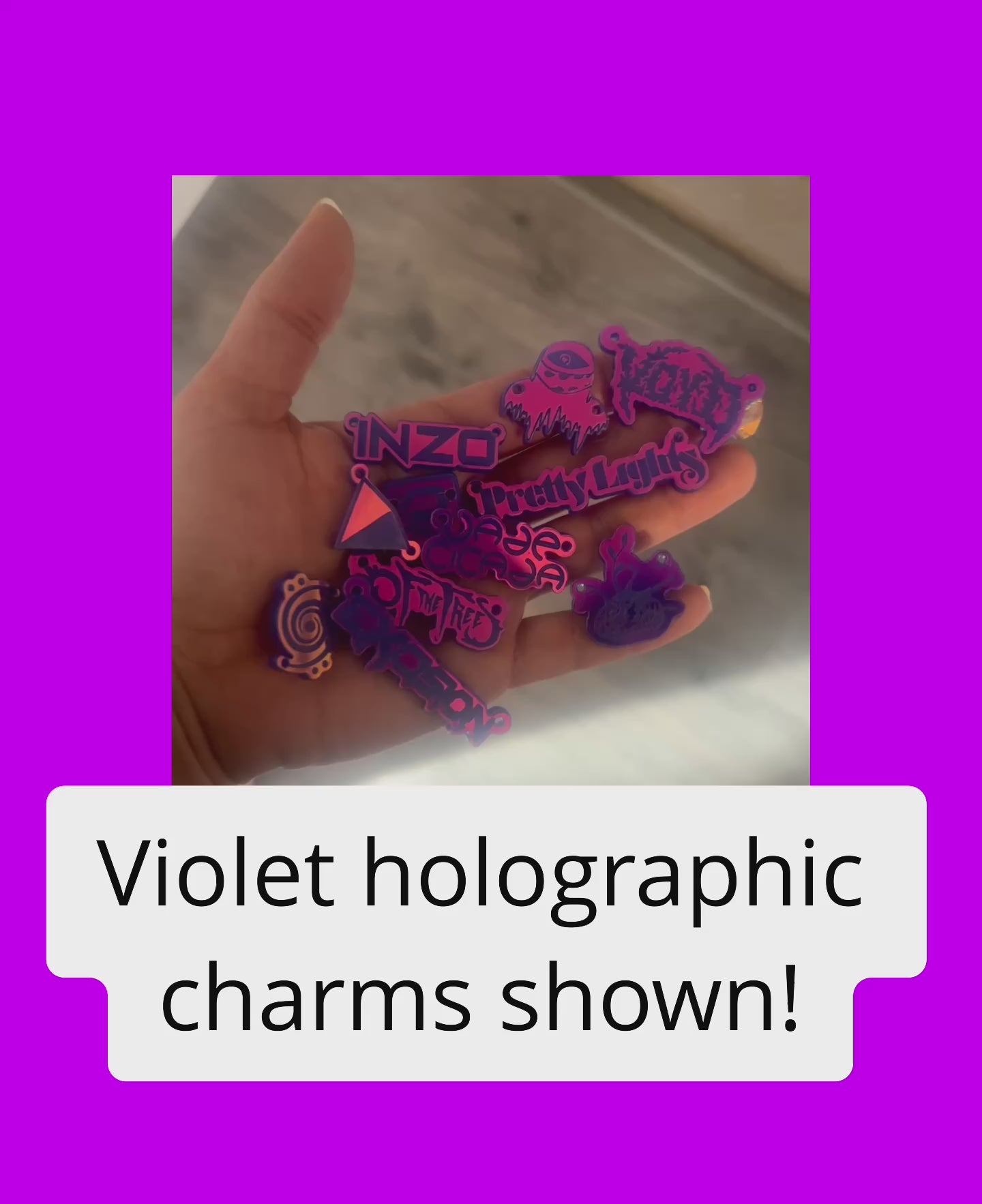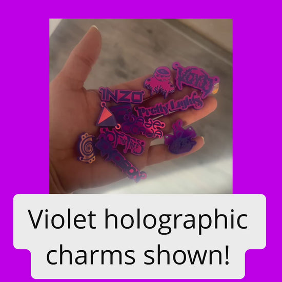 holographic stainless steel chain matches violet holographic acrylic perfectly! Also looks great paired with iridescent acrylic.