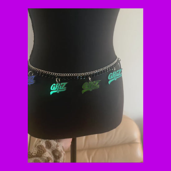 Customizable teal holographic chain belt