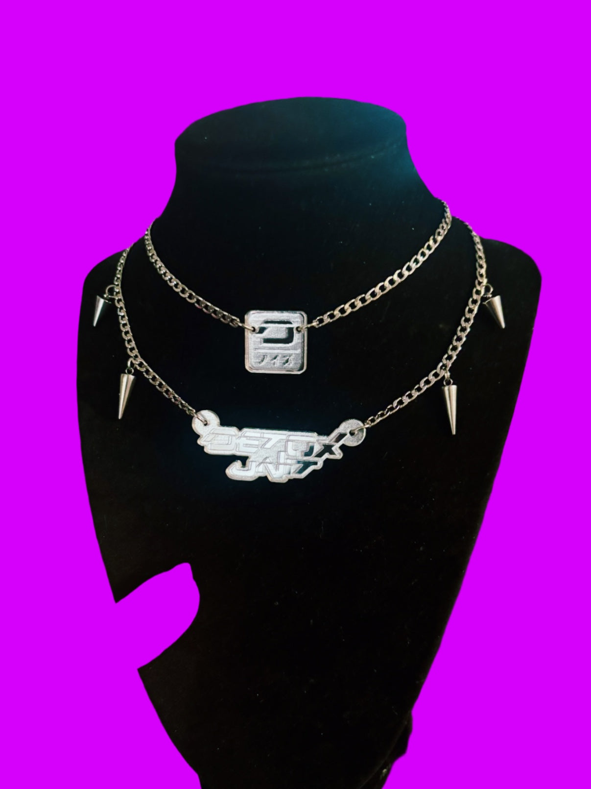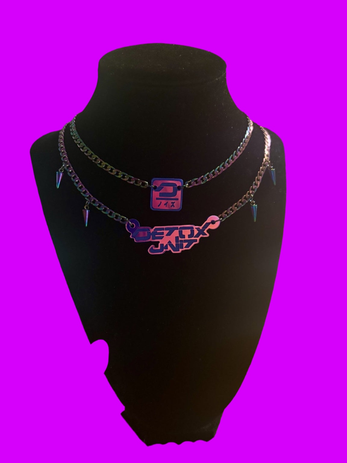 Stainless steel thin curb chain and matching stud charms - your choice of silver, gold, black, or holographic chain