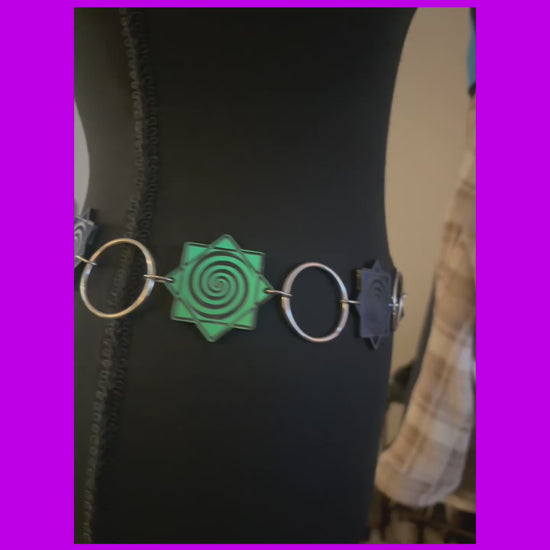 For sizing - select the range your waist size falls in. The belt and rings are made to that size and I then add about 10 inches of chain for adjustability down the hips!