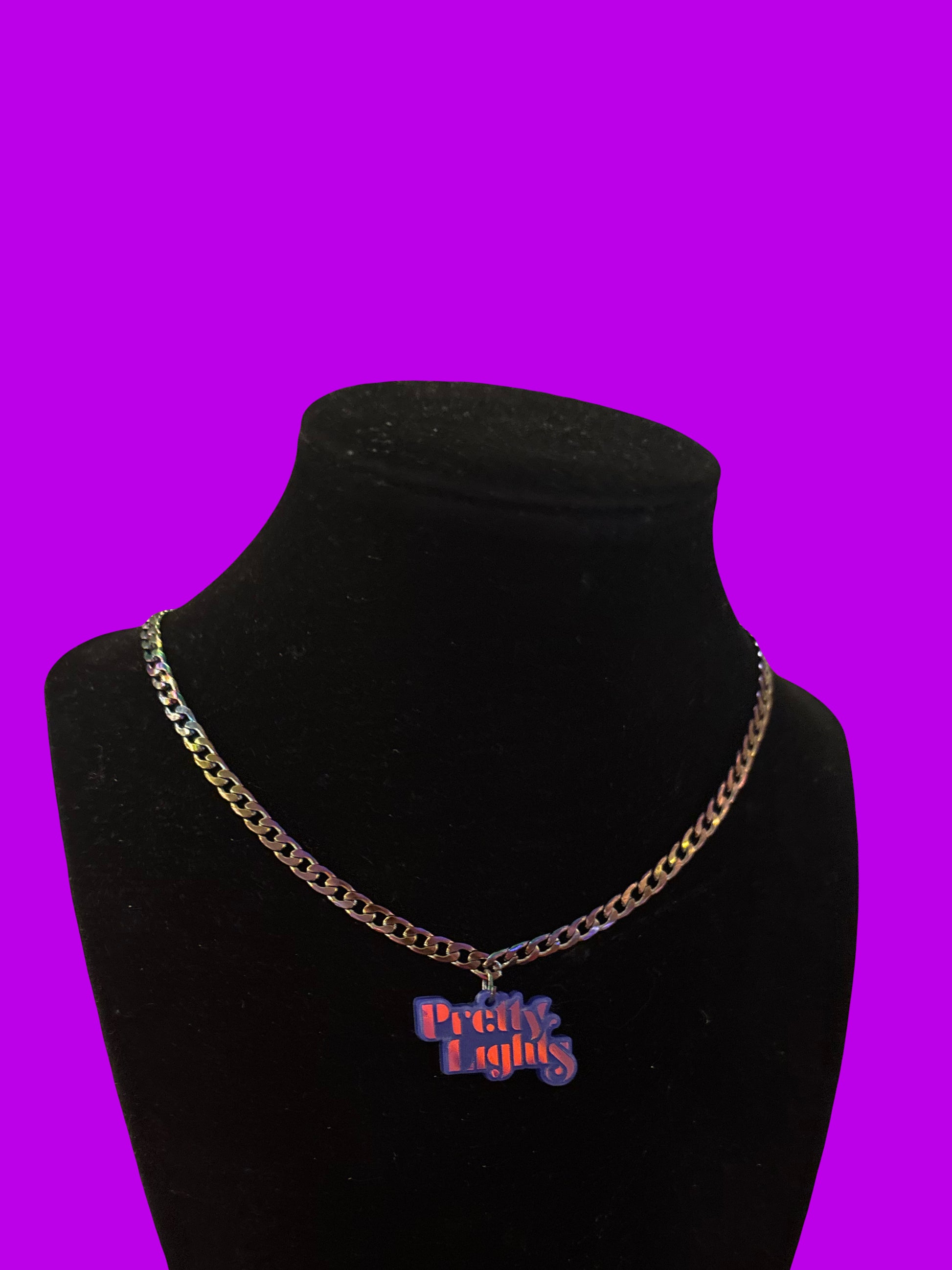 stainless steel curb chains with adjustable closures to wear as tight/loose as you like, an acrylic artist charms!
