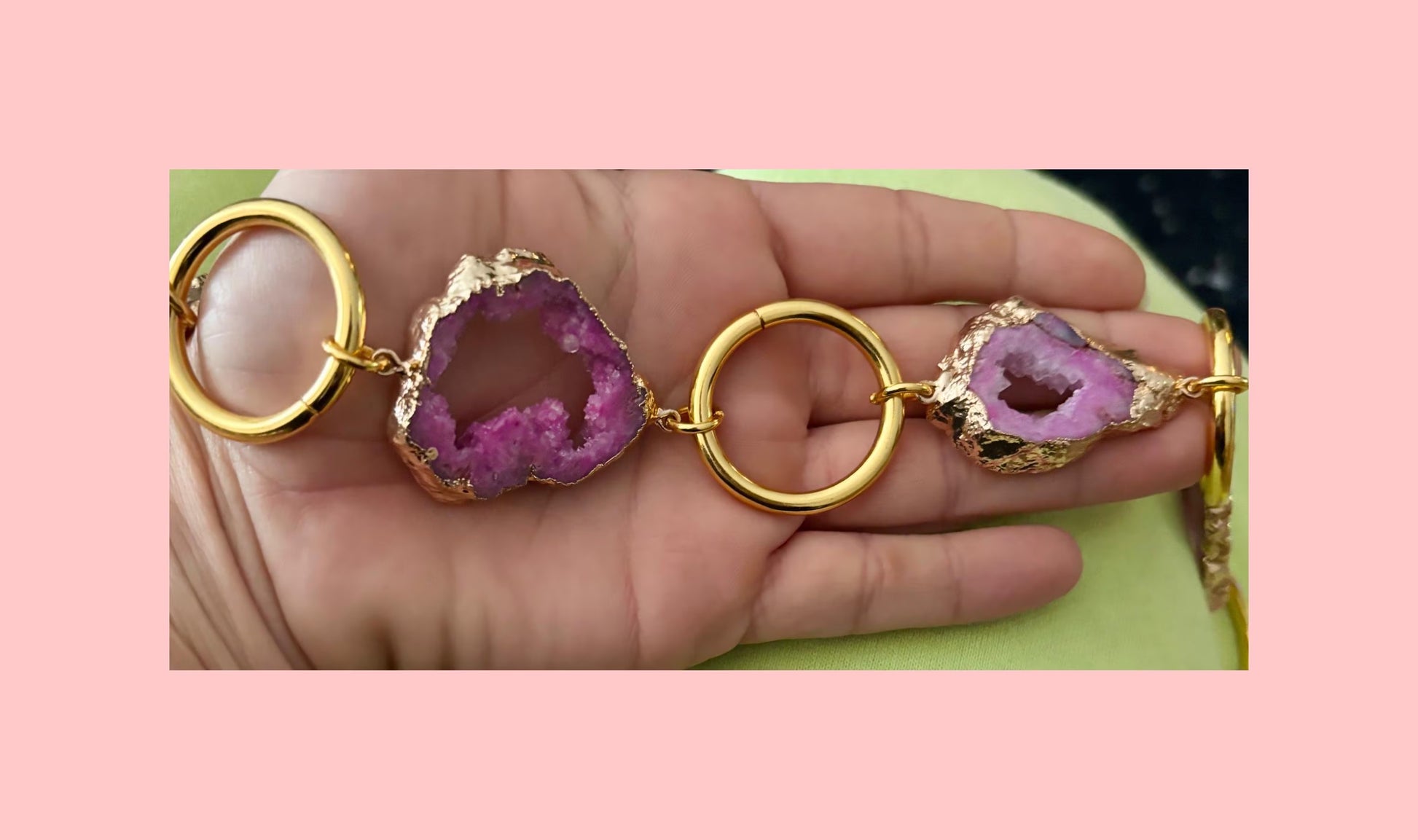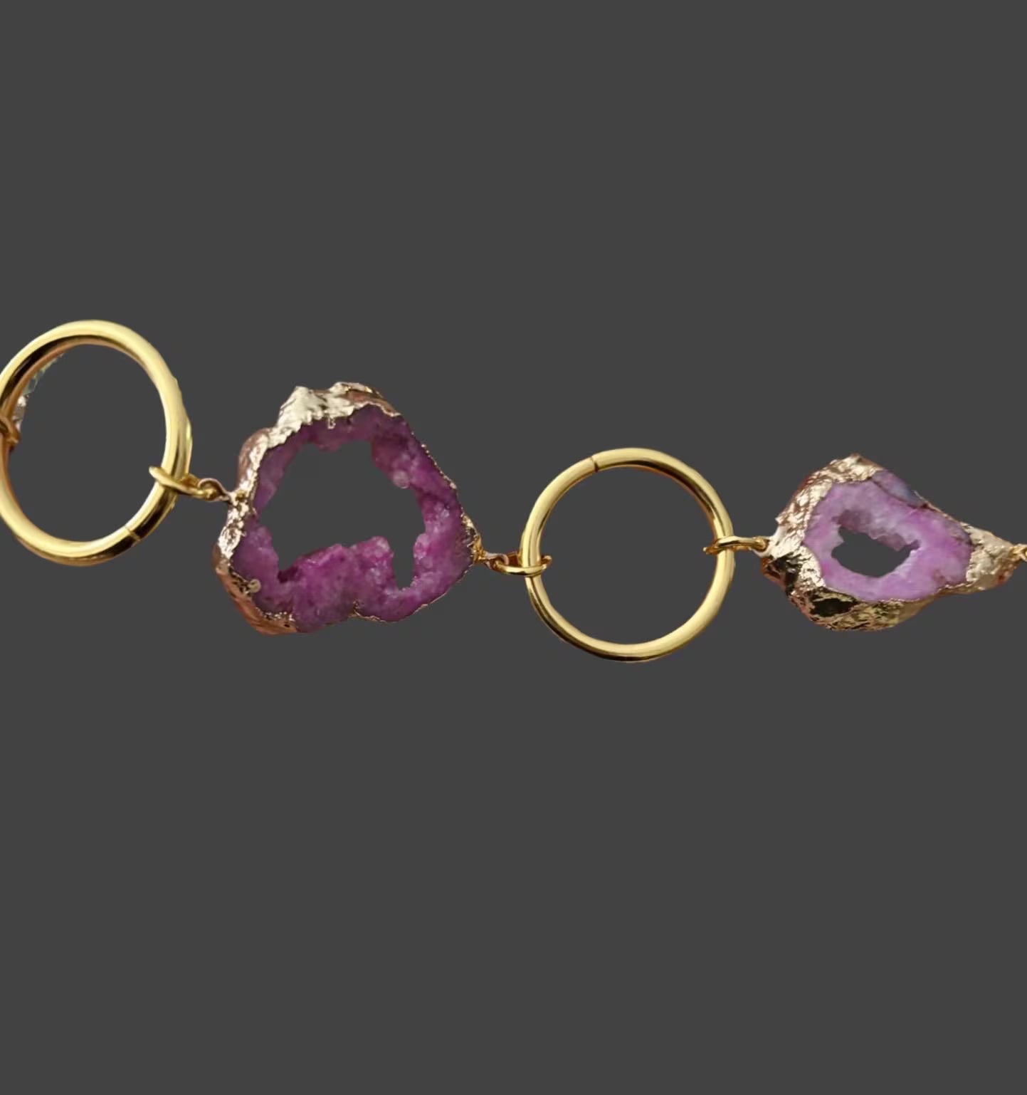 stainless steel hardware, crystal connectors. comes with a stainless steel curb chain to stack with!