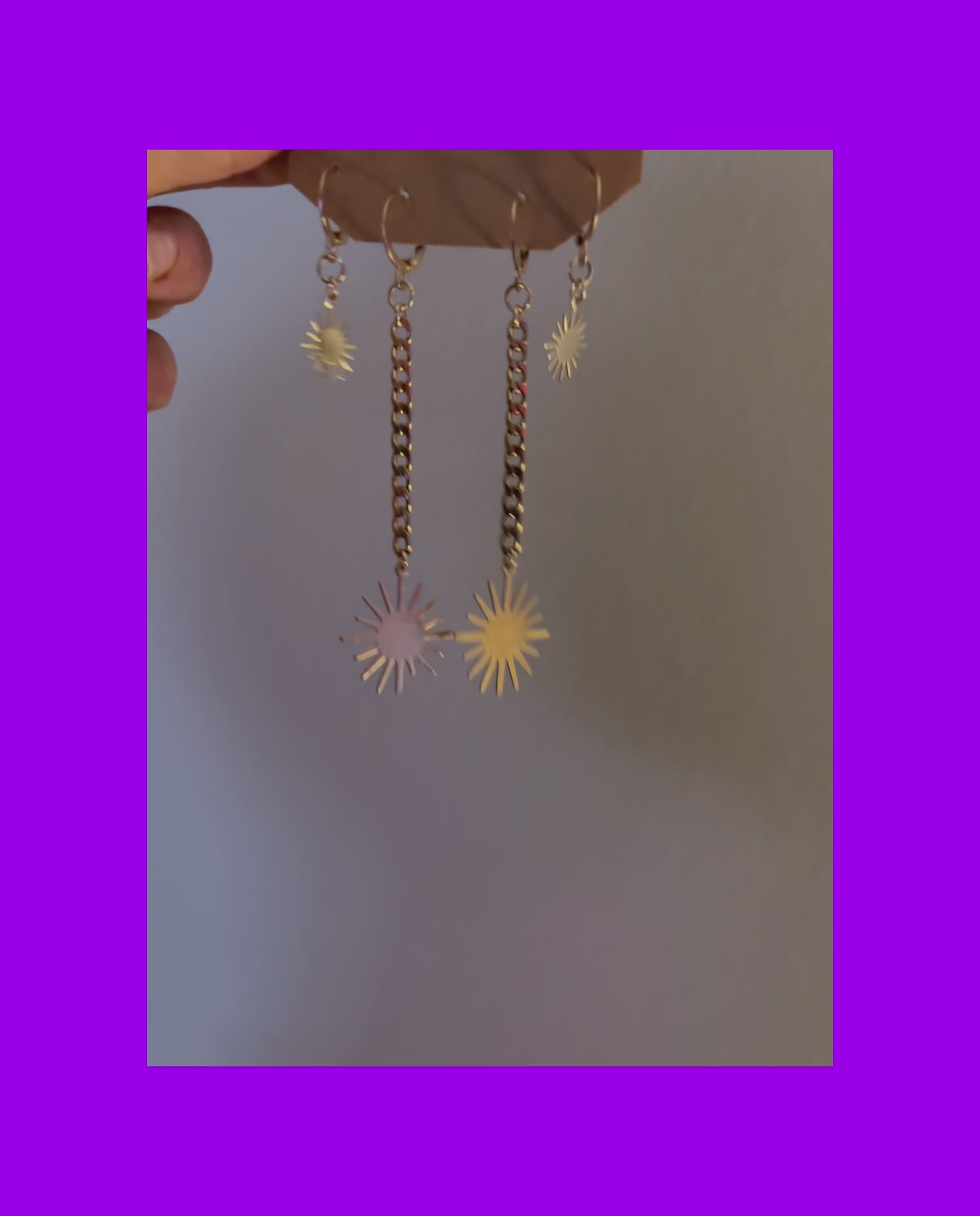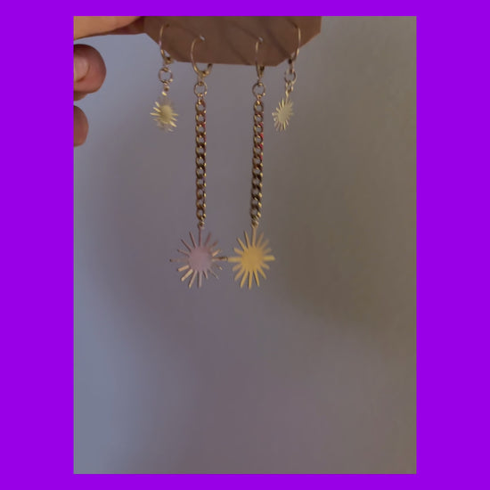 2 pairs of earrings! Light as a feather. Longer earring roughly 2.5 inches long. Stainless steel chain and stainless steel leverback hooks used. Tarnish resistant