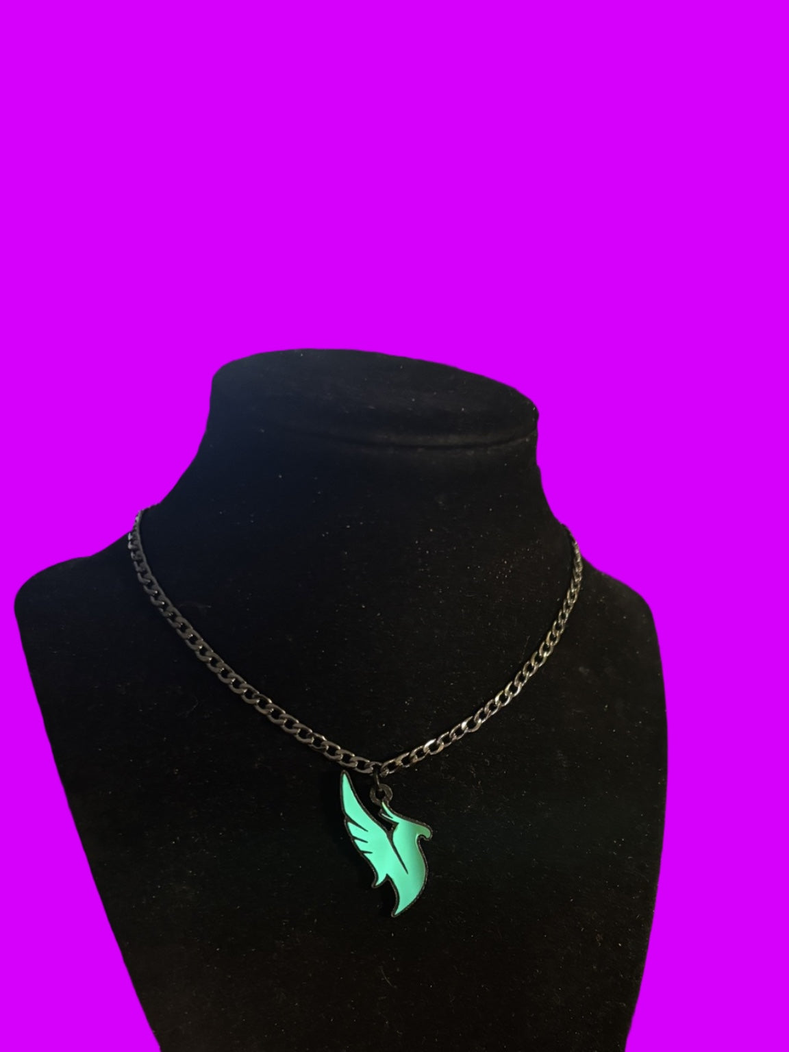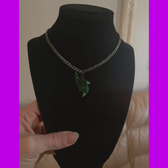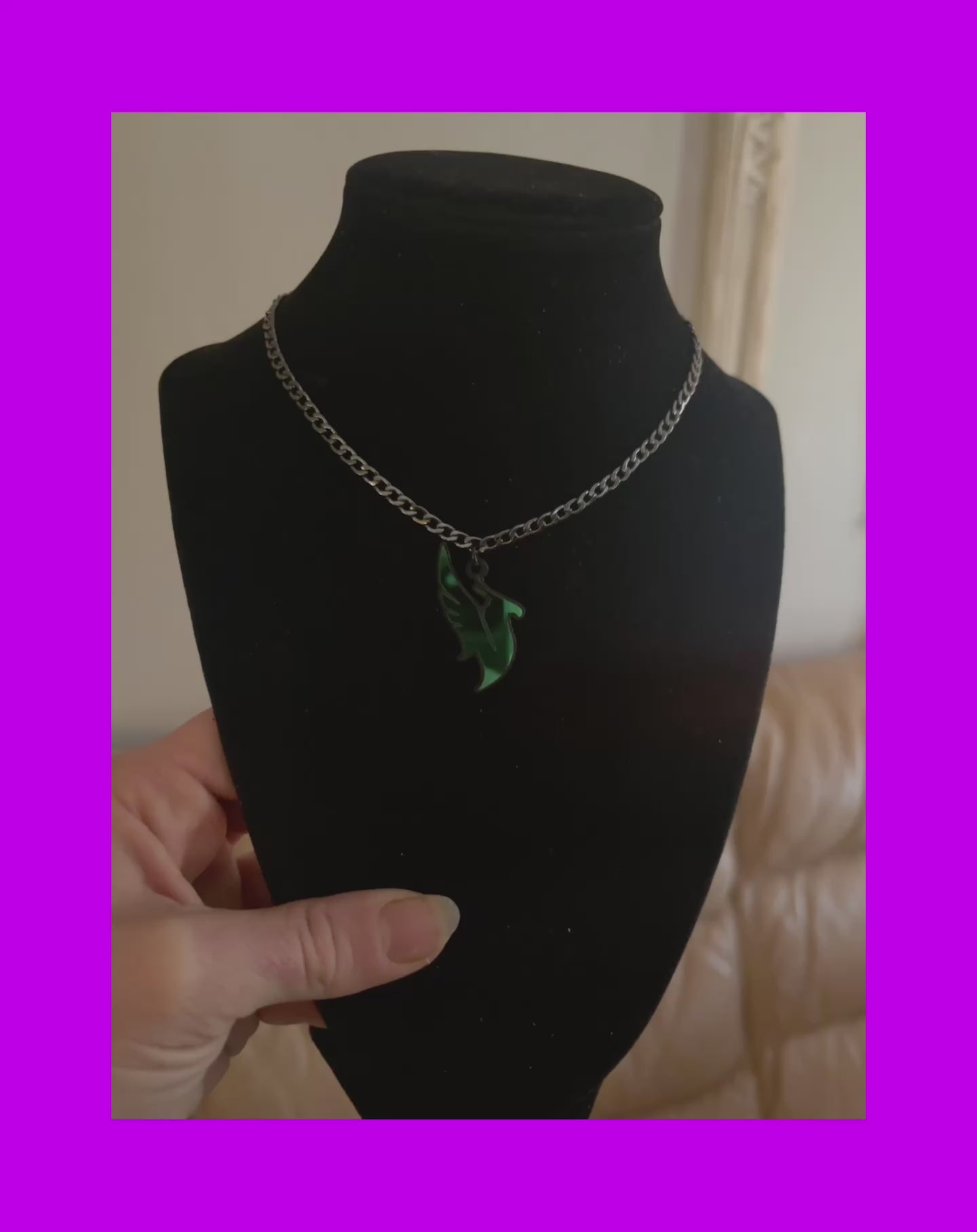 black/gunmetal stainless steel curb chain with adjustable closure to wear looser if preferred. charms are made of holographic acrylic-an overall teal color with a pine green/blue/teal color shift that engraves black with an overall teal color!