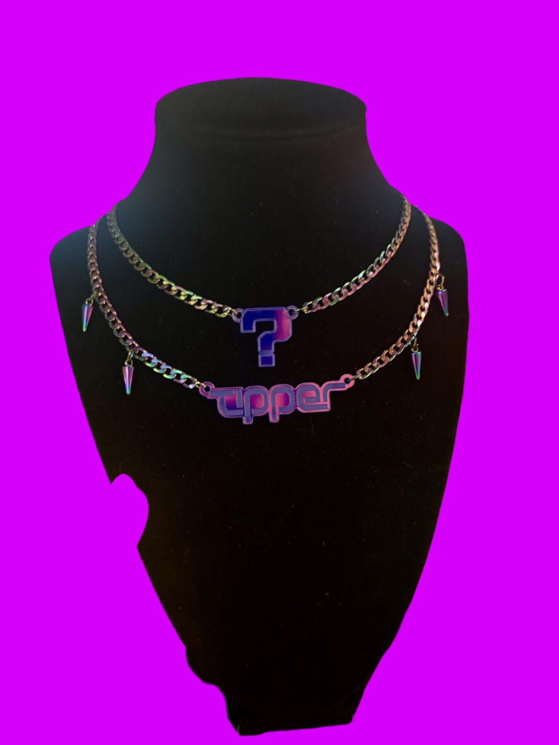Stainless steel thin curb chain and matching stud charms - your choice of silver, gold, black, or holographic chain
