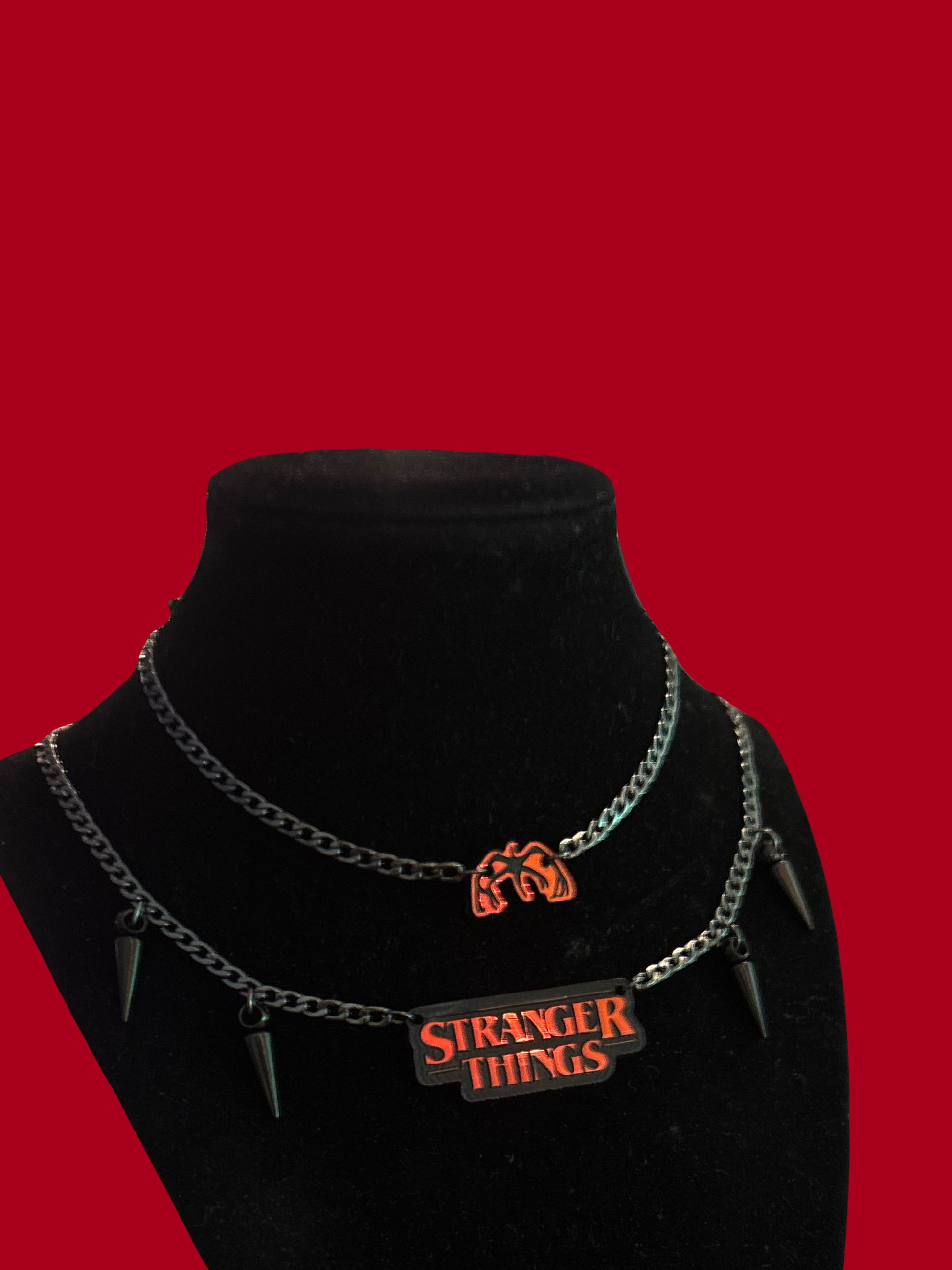 Stainless steel black curb chains, midnight holographic acrylic charms. Both necklaces have adjustable closures to wear looser if preferred