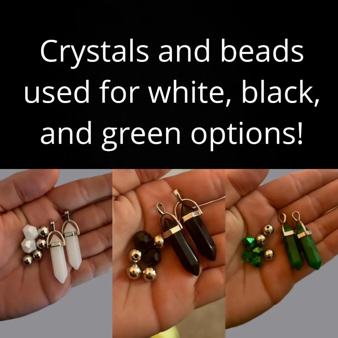 waist beads and stainless steel curb chain with matching manufactured crystals. all made with stainless steel tarnish resistant hardware