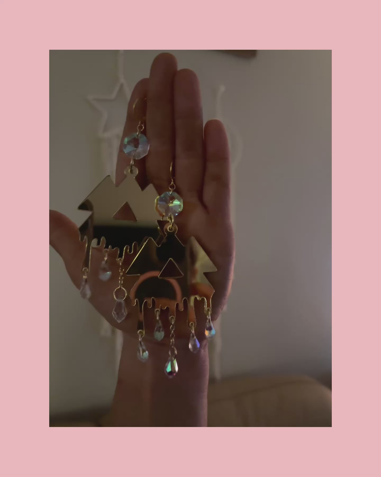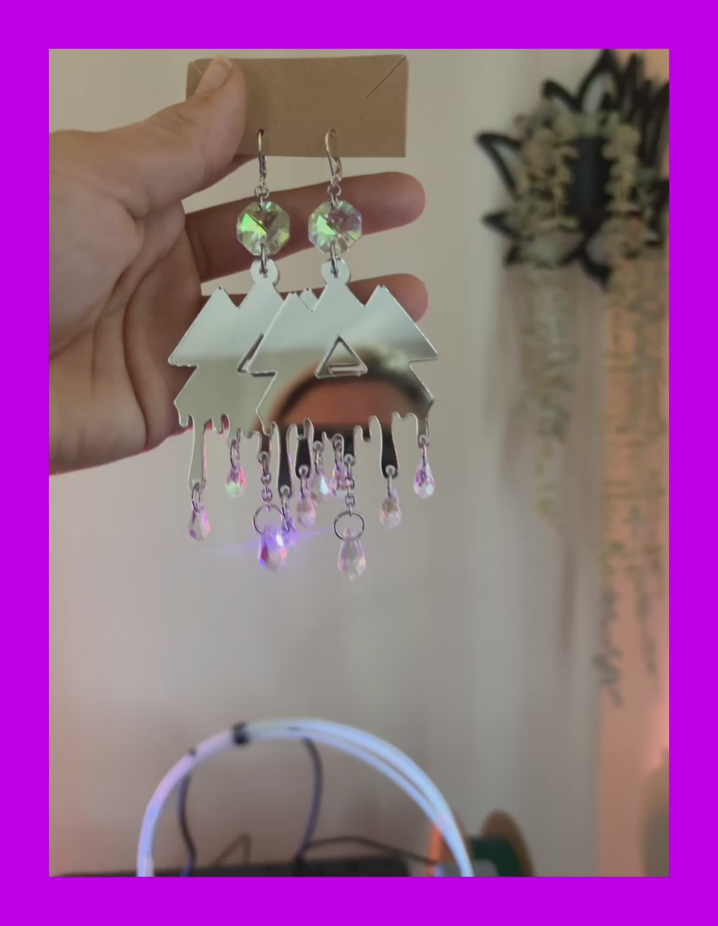 Your choice of acrylic or 3d printed wakaan charms, and sparkling iridescent gems! Earrings are roughly 3 by 2.5 inches