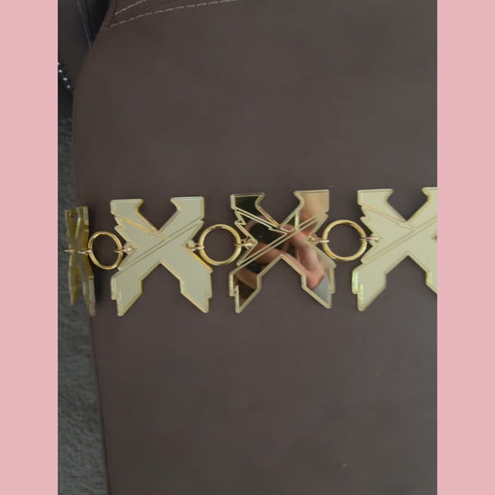 X inspired silver or gold mirror reflective acrylic metal ring belt