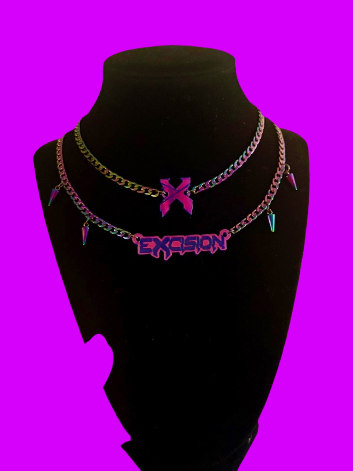 Stainless steel thin curb chain and matching stud charms - your choice of silver, gold, black, or holographic chain