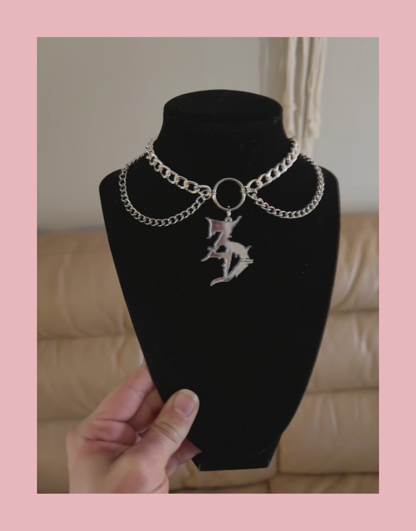 Stainless steel chains, adjustable closure, mirror acrylic ZD charm