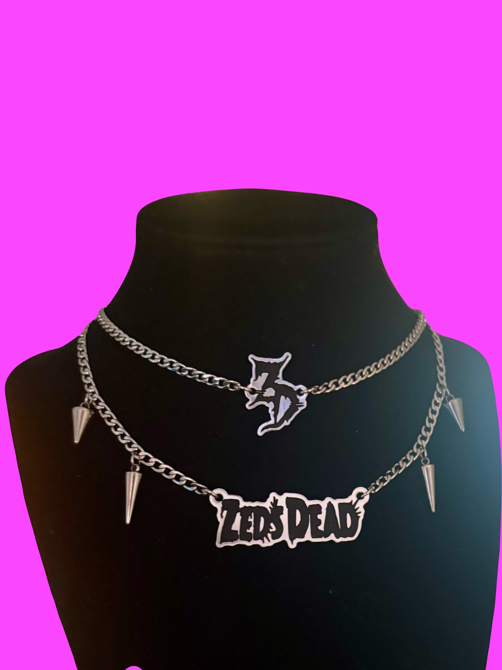 Stainless steel thin curb chain and matching stud charms - your choice of silver, gold, black, or holographic chain